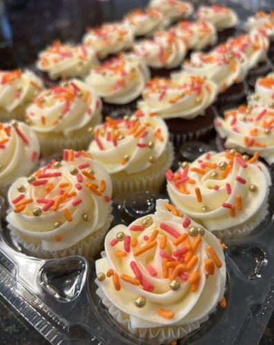 Like cakes & cookies, there are endless options when it comes to flavors & decorations. Cupcakes can be ordered in batches of 18, 36, 54 or more if needed. Cupcake pull-aparts are also an option. They look like a cake but it’s cupcakes arranged closely together.