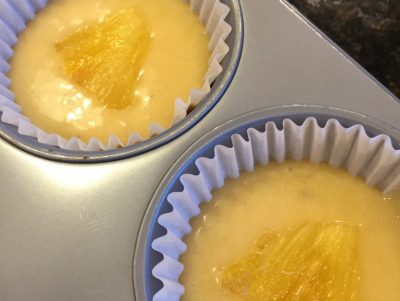 For a long time, I avoided pineapple upside down cake. For some reason, even though I have a massive sweet tooth, this type of cake was just too sugary for me. That all changed after I tried this recipe for the first time. I had a couple mangoes that were really ripe and decided to give it a try. It was so GOOD!!!! I’ve since tried it with pineapple and love it as well. This recipe lends itself to so many types of fruits(mango, pineapple, peach, apple, pear, apricot, cherries, plums or figs). Just make sure you cut the fruit thinly so it will get all ooey & gooey. This recipe makes one 9 inch cake and four cupcakes.