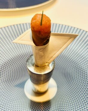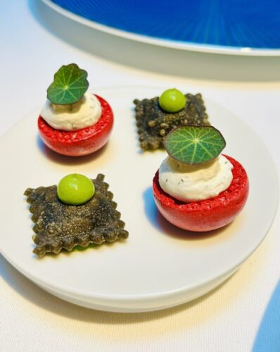 As I stated earlier, the menu is constantly changing, which is a good thing. That means you’re getting food that is at the peak of freshness, and in season. If you’ve never done a tasting menu, you should expect much smaller portions but a lot more courses. We were absolutely stuffed by the end of the meal, so don’t worry about going hungry. When I get to experience a tasting menu, I like to savor every course, taking small bites and really paying attention to the flavors, textures and smells of everything. A tasting menu isn’t meant to be gobbled down like a burger and fries. You set the pace by how quickly you finish each course, so try not to be in a rush.  I was thrilled when they gave me a personalized menu at the end of the meal in this lovely watercolor rendering folder, signed by the chef.
